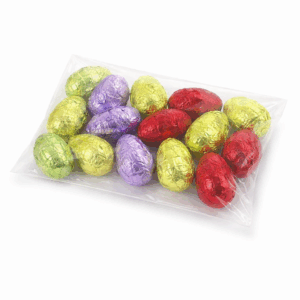 Trouvez des œufs enveloppés au chocolat lait; noir; blanc, des poules gourmandes garnies, des œufs nougat garnie de papillotes colorées et bien plus encore, pour ravir les papilles de vos clients.