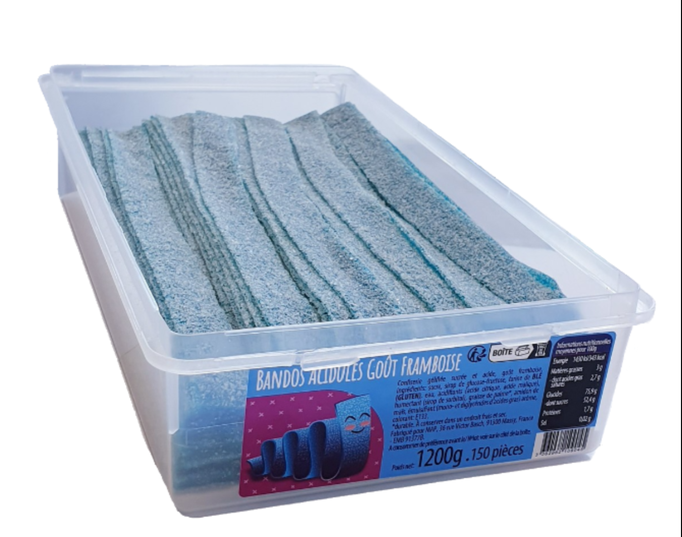 Ingrédients Lasso framboise: sirop de glucose-fructose, farine de blé, sucre, dextrose, huile de palme, acidifiant (acide citrique), arôme, colorant (bleu brillant FCF), antioxydants (acide ascorbique, E306), agent d’enrobage (cire d’abeille blanche et jaune).