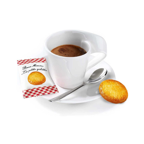 Élaborée avec du pur beurre, cette petite galette offre une texture délicatement croustillante et un goût authentique, simple et généreux. Son format 3,5g est parfaitement calibré pour accompagner un café, un thé ou une boisson chaude sans alourdir le service.