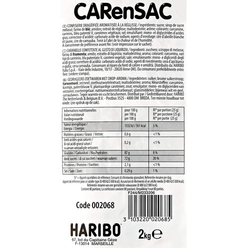 Ce sachet comprend 1 kg Carensac HARIBO en vrac.