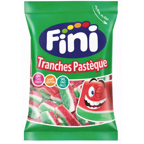 Les bonbons tranches pastèque fizz halal Fini sont des confiseries gélifiées délicieusement fruitées qui séduisent par leur forme réaliste de tranche de pastèque et leur enrobage acidulé. Leur combinaison parfaite entre douceur sucrée et sensation fizz légèrement piquante en fait un bonbon incontournable pour les amateurs de confiseries acidulées.
