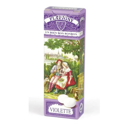 – Bonbons Violette : du sucre, arôme naturel, une graine d’anis vert (0,2%) au cœur du bonbon, un extrait de violette.
