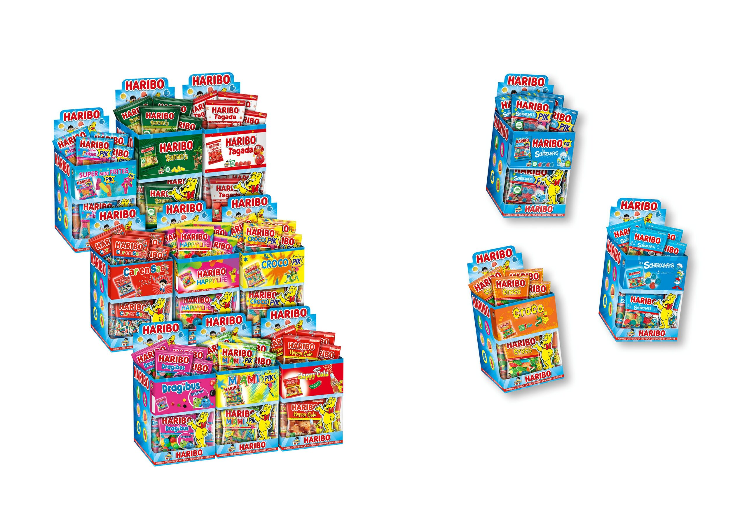 Colis de 12 présentoirs de 360 mini sachets Haribo composé de :