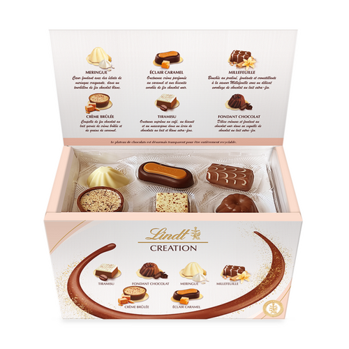 Offrez un moment de pure gourmandise avec le Ballotin Création Dessert 173g de Lindt, un assortiment élégant de chocolats inspirés des plus grands classiques de la pâtisserie. Les Maîtres Chocolatiers Lindt ont sélectionné les meilleures recettes de desserts pour les transformer en bouchées chocolatées irrésistibles : moelleux au chocolat, tarte citron meringuée, crème brûlée, tiramisu, fondant praliné… Chaque chocolat est un hommage aux desserts emblématiques, alliant textures fondantes et saveurs authentiques.