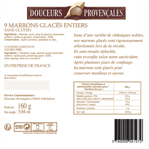 La qualité des marrons glacés Corsiglia est légendaire. Ils sont ici présentés sous vide afin de pouvoir en profiter toute l’année avec une conservation facilitée.