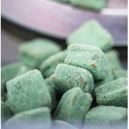 Ingrédients : sucre, AMANDE(16%), NOISETTE(6%), beurre de cacao, sucre glace (sucre, amidon), sirop de glucose, fèves de cacao, LACTOSE (LAIT), émulsifiants : lécithines, colorant : chlorophylline cuivrique, vanille, extrait de vanille