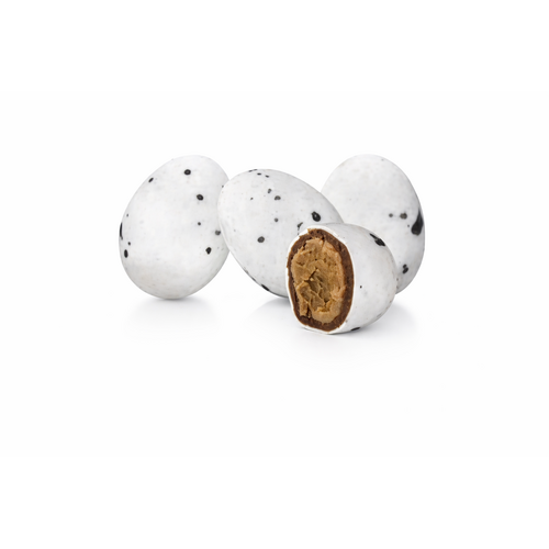 Les Œufs de Goéland sont une confiserie chocolatée raffinée, idéale pour la saison de Pâques mais également parfaite en vente annuelle en vrac premium. Chaque œuf renferme un cœur fondant de praliné onctueux, délicatement enrobé d’un mélange harmonieux de chocolats et de Gianduja, puis sublimé par une fine couche de sucre croustillant à l’aspect moucheté.